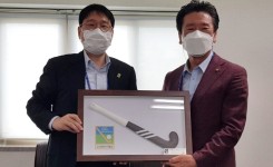대한하키협회 이상현 회장, 아시아하키연맹 ceo 타얍 이크람 동해시 방문