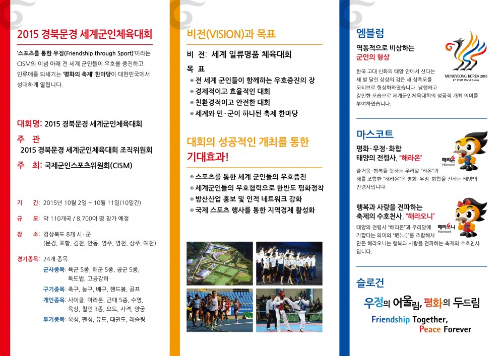 * 개회식 : 2015. 10. 2. 국군체육부대 주경기장(경북 문경 호계면 소재)