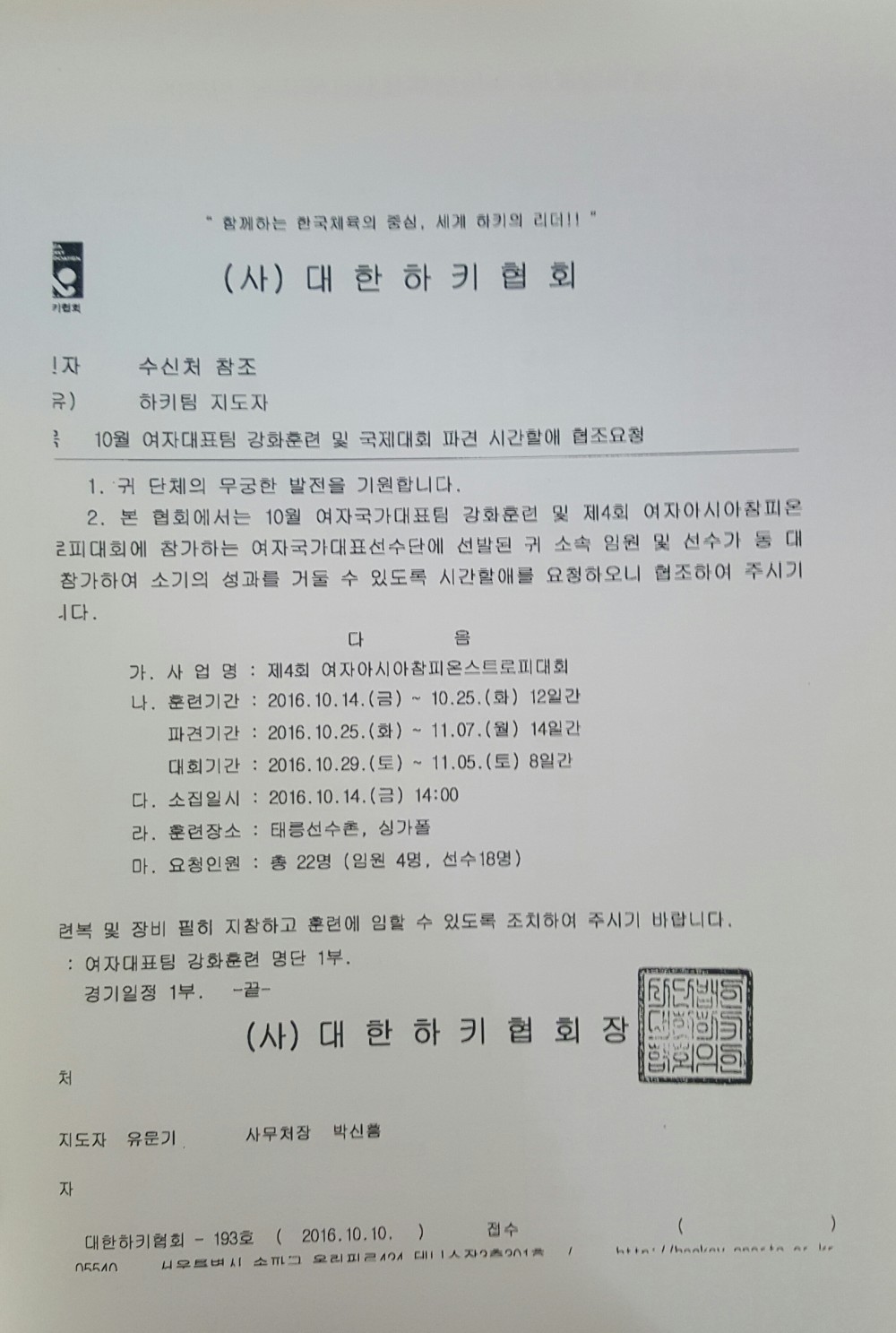 • E-Mail : korea@hockey.or.kr