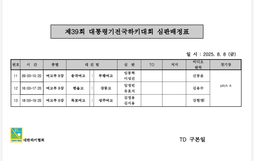 제39회 대통령기 전국하키대회 심판배정표(8.8.) 페이지 정보 작성자 하키협회 댓글 0건 조회 866회 작성일 25-08-07 본문 제39회 대통령기 전국하키대회 심판배정표(8.8.) 목록 이전글 제39회 대통령기 전국하키대회 심판배정표(8.9.) 수정 다음글 제39회 대통령기 전국하키대회 심판배정표(8.7.) 이전글제39회 대통령기 전국하키대회 심판배정표(8.9.) 수정 25.08.08 다음글제39회 대통령기 전국하키대회 심판배정표(8.7.) 25.08.06