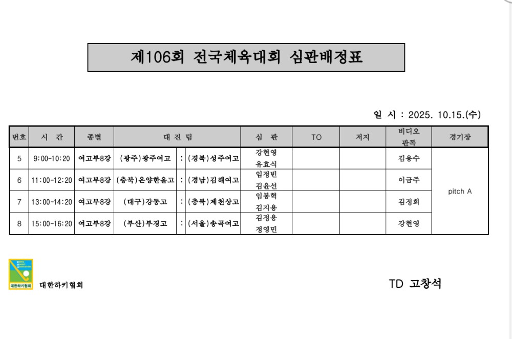 제106회 전국체육대회 심판배정표(10.15.)