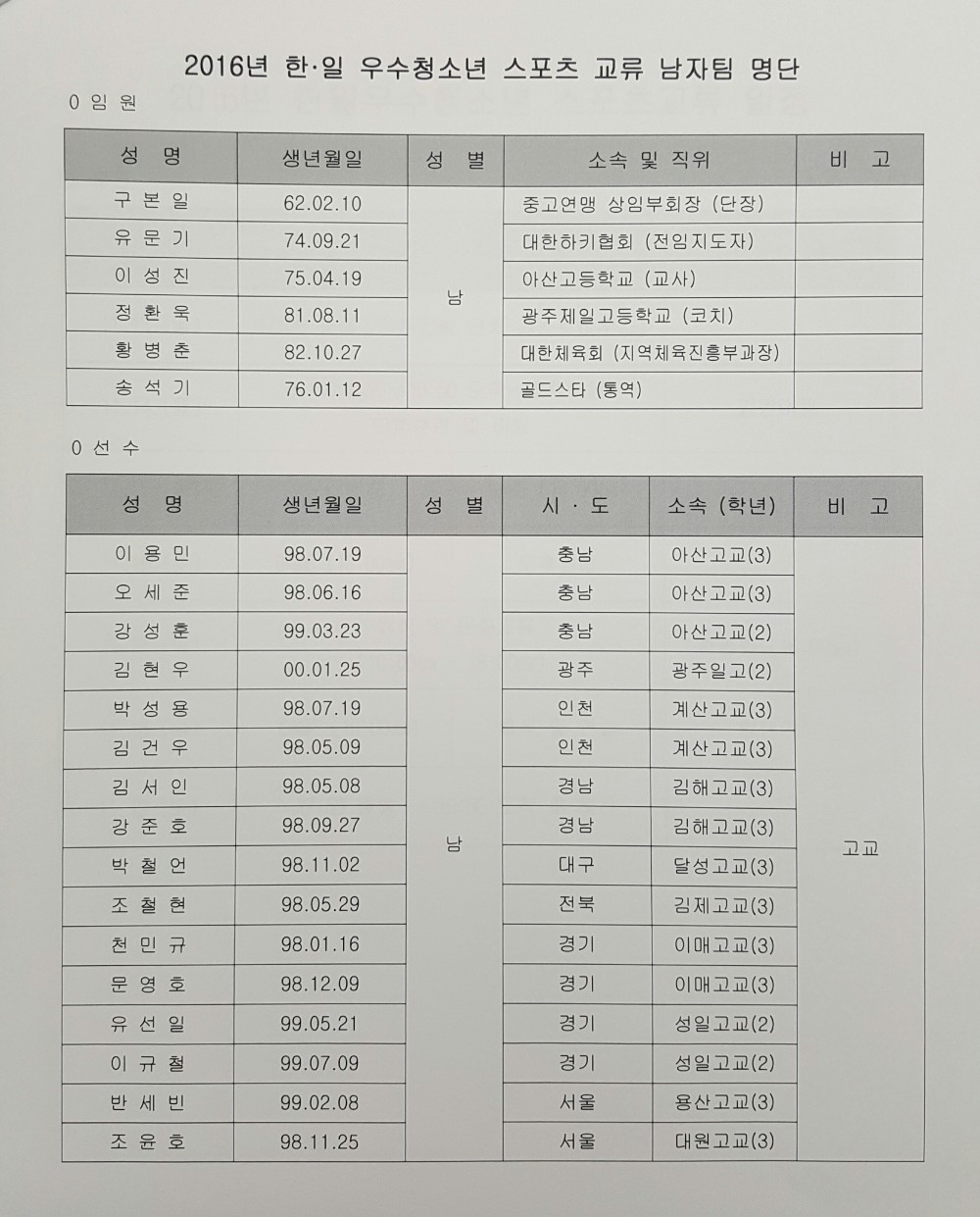 2016년 한일우수청소년 스포츠교류 파견 결과 > 공지사항