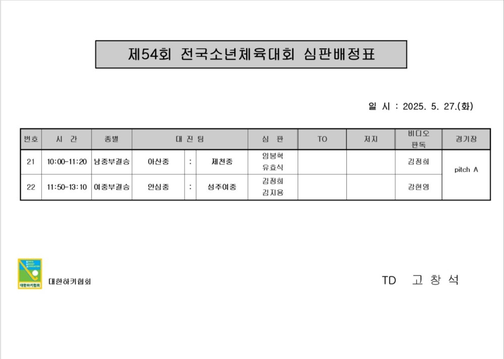 제54회 전국소년체육대회 심판배정표(5.27.)